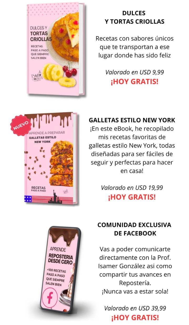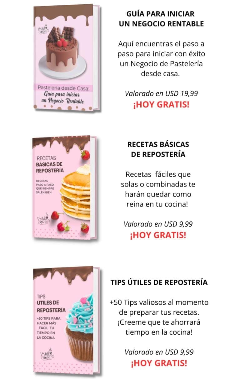 Hoy quiero compartir contigo todo ese conocimiento en un Ebook 100% online, diseñado para que puedas aprender desde cualquier lugar, sin limitaciones. Mi objetivo es ayudarte a transformar tu pasión en una oportunidad real, sin que nada te detenga. ¡Este es tu momento! 🎂✨